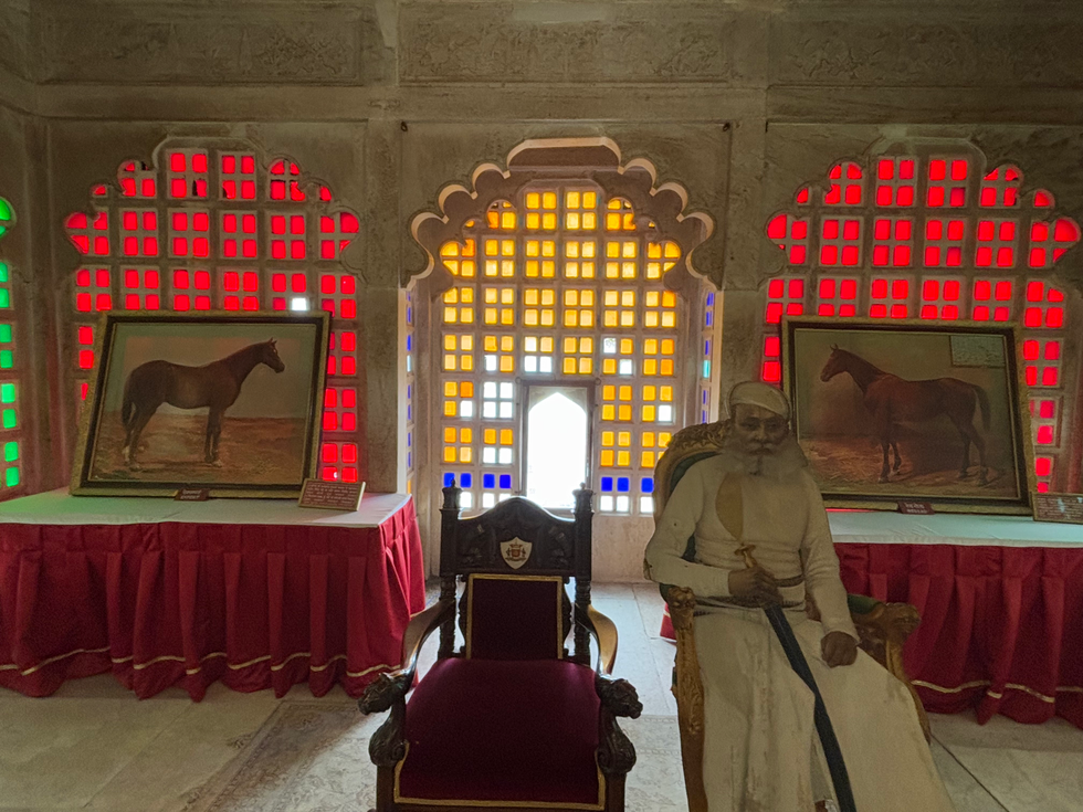 As we entered through its grand gates, we stepped into a world carved in marble and mosaic, where time seemed to pause. Built over centuries by successive rulers, the palace is a harmonious blend of Rajput strength and Mughal grace. Ornate balconies, delicate mirror work, colored glass windows, and sprawling courtyards unfolded like scenes from a royal chronicle. Each room whispered stories — of valor, love, and opulence.